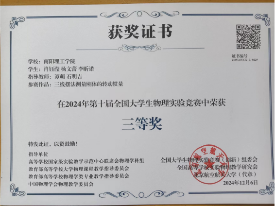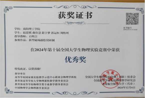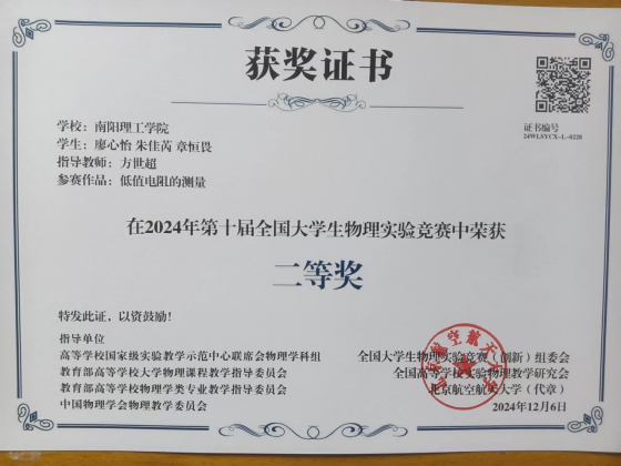 本次竞赛以线上和线下相结合的形式进行,共有全国667多所高校的2755支队伍、16076人参赛,一等奖、二等奖和三等奖评选比例分别为10%、20%和30%。为参加本次竞赛,在员工处、实验室与设备管理处的支持下,betway必威组织了以大学物理实验教学中心为主的竞赛指导小组,负责组织参赛的各项事宜。经过精心策划和准备,按照组委会对参赛项目范围的要求,组织队伍参加校初赛。2024年,经校初赛选拔,选取了5支队伍参加国赛,获得国家级二等奖1项,国家级三等奖1项,优秀奖3项,并获优秀组织奖。