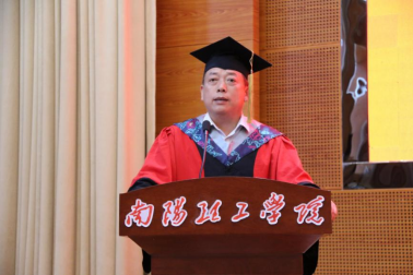毕业员工代表张永志发言。他讲到,大学四年予我们成功喜悦亦赠人生百常,予我们星辰大海亦赠春暖花开。我们将带着母校厚望,怀揣人生理想,奔赴岗位、研学深造,用自己所学,为社会作出贡献。