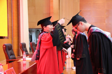 公司领导为毕业生拨苏正冠,代表毕业生们完成学业、获得学士学位。毕业生郭萌迪作为领誓人带领全体毕业生进行宣誓,立志秉承南工精神和校训,争做国民表率,勇为社会栋梁,成为堪当民族复兴重任的时代新人。