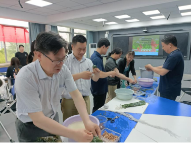 本次活动围绕端午节民间传统习俗特征,引导师生认知、尊重、继承和弘扬传统文化,一起参与包粽子、缝制香囊、编织五彩绳等活动。大家纷纷露出看家本领,一捋一填,压紧扎捆,包出美味粽子;一钩一锁,细针轻舞,织出祈福香囊;一折一缠,巧手穿梭,编出五彩绳。