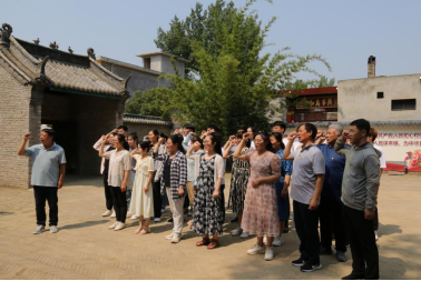 在中共南阳第一支部旧址,研学团重温中共南阳支部委员会的历史革命故事。全体党员面对党旗,庄严宣誓,重温入党誓词。坚定有力的誓言久久回荡,在场的每一位同志都接受了一次深刻的党性教育和灵魂洗礼。在党旗的见证下,学院教师党支部为党员教师赠送“政治生日”贺卡,切实让党员们感受到满满的自豪感和荣誉感。