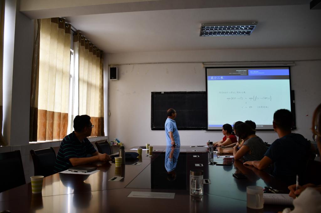 应数学与统计学院邀请,7月29日上午,厦门大学博士生导师王海斌教授到校为数学与统计学院50余名师生做了《当代线性回归模型》学术讲座。王教授对线性回归这一经典课题,做了深入浅出的讲解,使得参与报告会的师生能够深入接触到当今最前沿的线性回归模型发展方向,感受到了数学的魅力,加强了专业认同度,提高了学习的积极性,取得了较好的效果。王教授还对年轻教师的成长,科研方面做了经验介绍。