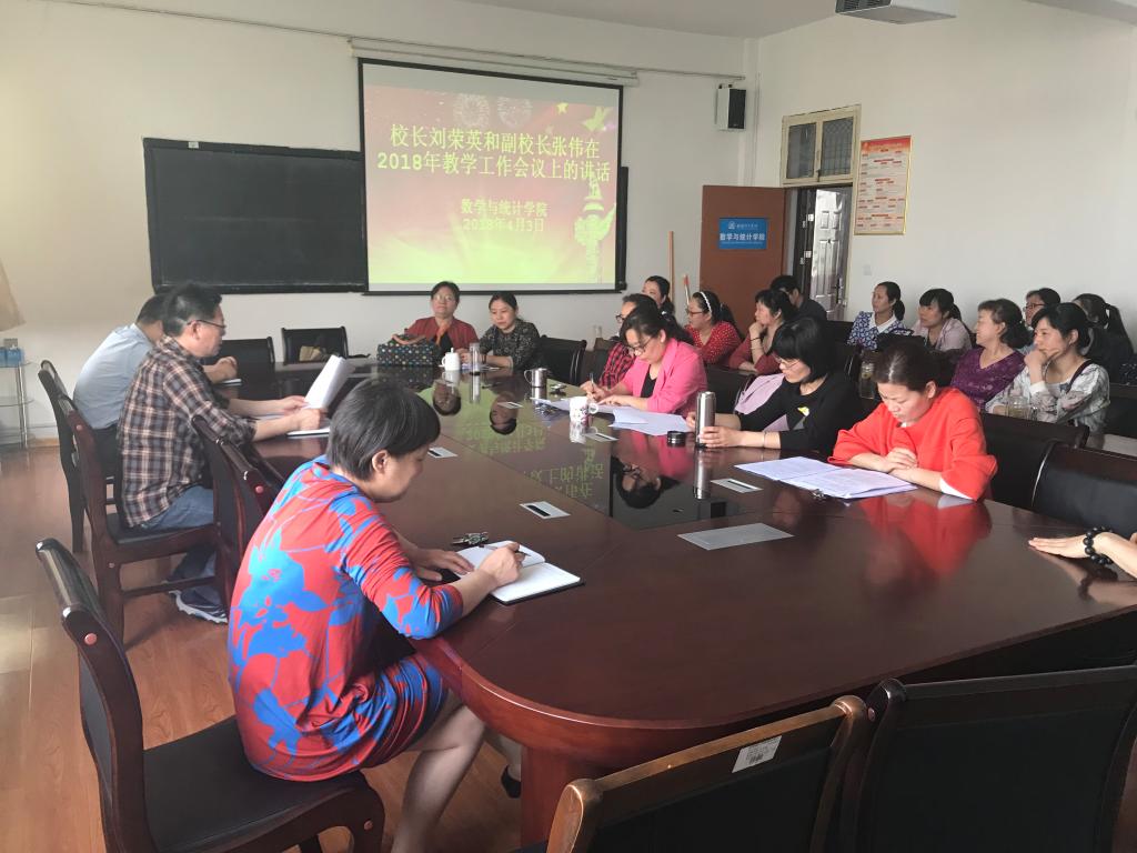4月3日下午十五点,数学与统计学院召开全体教师学习落实2018年学校工作要点会议,安排部署近期工作。会议由郭学军副经理主持,向学院全体老师传达了两项重点内容。