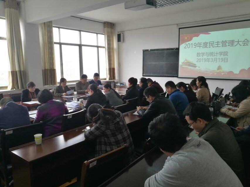经数学与统计学院分工会与党总支研究,报校工会批复,公司于3月19日至20日召开2019年度民主管理大会,会议讨论并通过了朱玉清经理所做的数学与统计学院工作报告,陈同勉书记所做的数学与统计学院分工会工作报告。