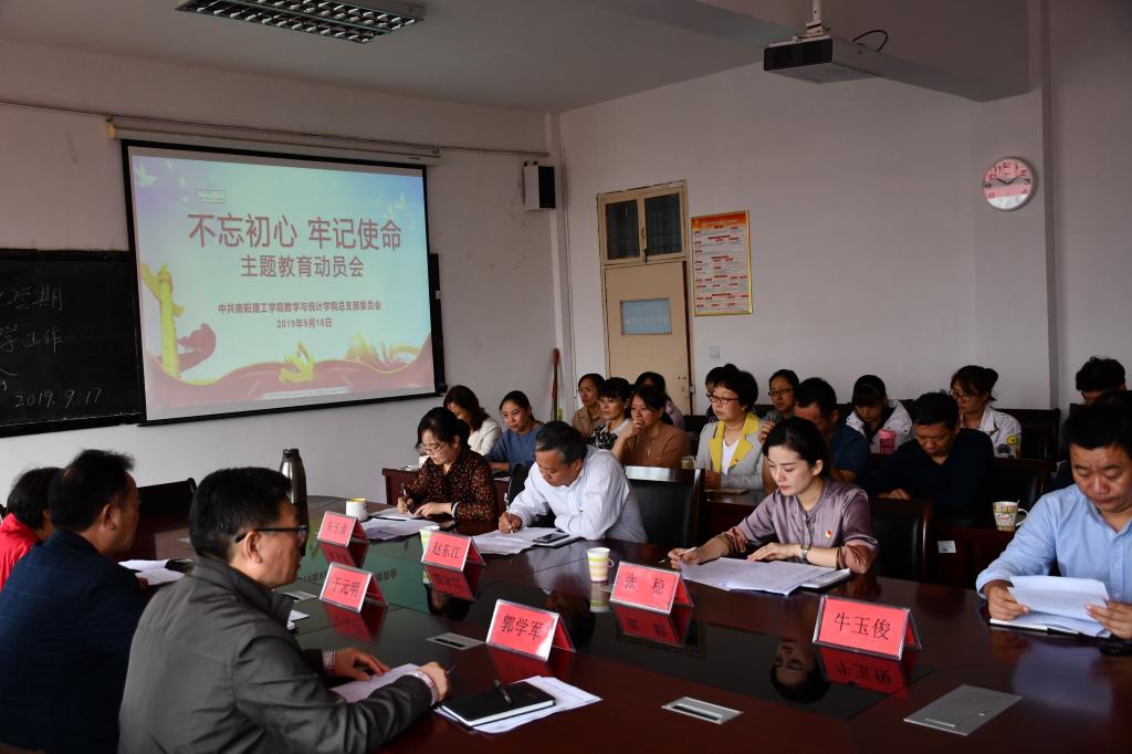 本网讯(特约记者/胡 丽)9月18日上午,数学与统计学院在学院会议室召开“不忘初心、牢记使命”主题教育动员大会。公司党总支副书记陈同勉作动员讲话,动员会由副经理郭学军主持。全体教师党员和员工党员代表参加动员会。