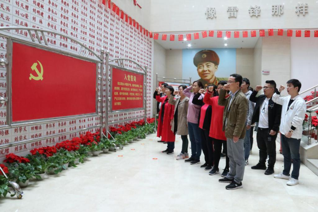在馆内的党旗标志前,全体党员高举右拳,重温入党誓词。在庄严的宣读结束之后,进入到馆内,一件件实物、一幅幅照片、一段段文字,都记录着雷锋不平凡的一生。在参观的同时,讲解员为大家介绍了雷锋同志的生平事迹和苦难经历。雷锋在1960年参加中国人民解放军,同年11月加入了中国共产党,1962年以特邀代表身份,出席沈阳军区首届共产主义青年团代表会议,并被选为主席团成员在大会上发言。1962年,不幸因公殉职,年仅22岁。