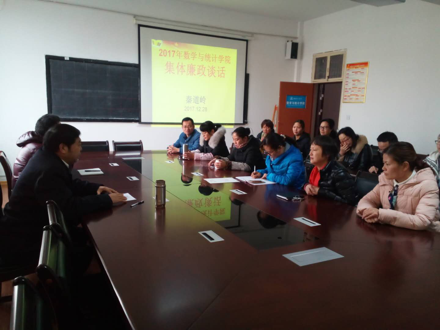公司党总支书记秦道岭针对中国共产党廉洁自律准则、中国共产党纪律处分条例、中国共产党问责条例、关于新形势下党内政治生活的若干准则、中国共产党内监督条例以及八项规定、四风问题并结合数学与统计学院实际情况,他指出,党员、干部一要认清形势、提高认识,充分认识反腐倡廉的极端重要性,居安思危,不断增强忧患意识,树立长期作战的思想准备;二要强化作风建设,做合格党员:三要廉洁勤政,落实责任。做到不贪不占,不谋私利,要淡名轻利,令行禁止。管住自己的嘴、管住自己的腿,管住自己的手,管住自己的脑。忠于职守,勤奋敬业,不当“懒汉”,在位谋其政,兢兢业业。四是廉洁过节,筑牢底线意识。以忠诚、干净、担当的实际行动共同创造公司的美好明天。