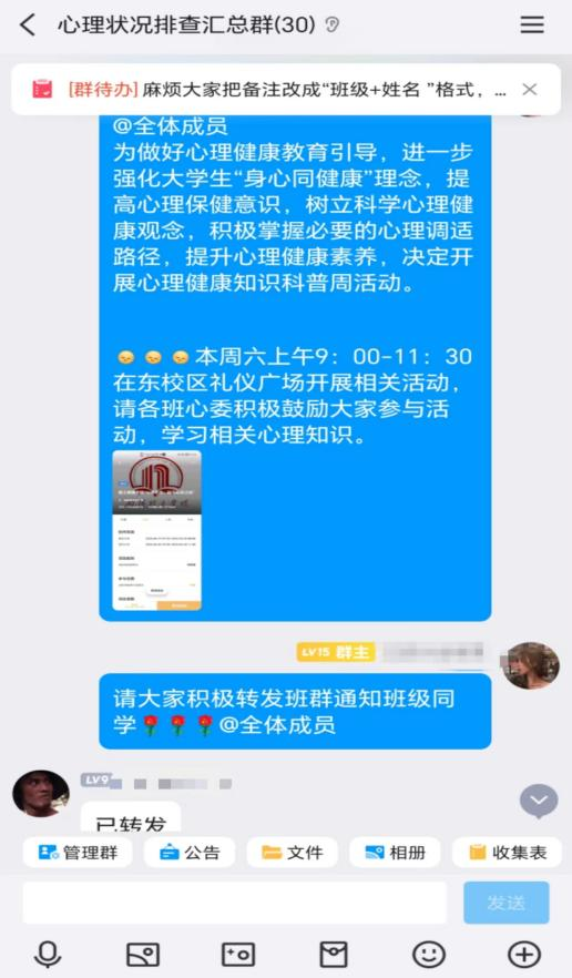 为帮助老员工增强心理健康意识,熟知心理健康求助途径,熟悉常见心理危机的识别线索、了解心理危机的应对方法,提升心理健康素养,针对大一至大四不同的情况,各班召开相应的心理班会,及时了解班级同学的问题并且给予帮助。