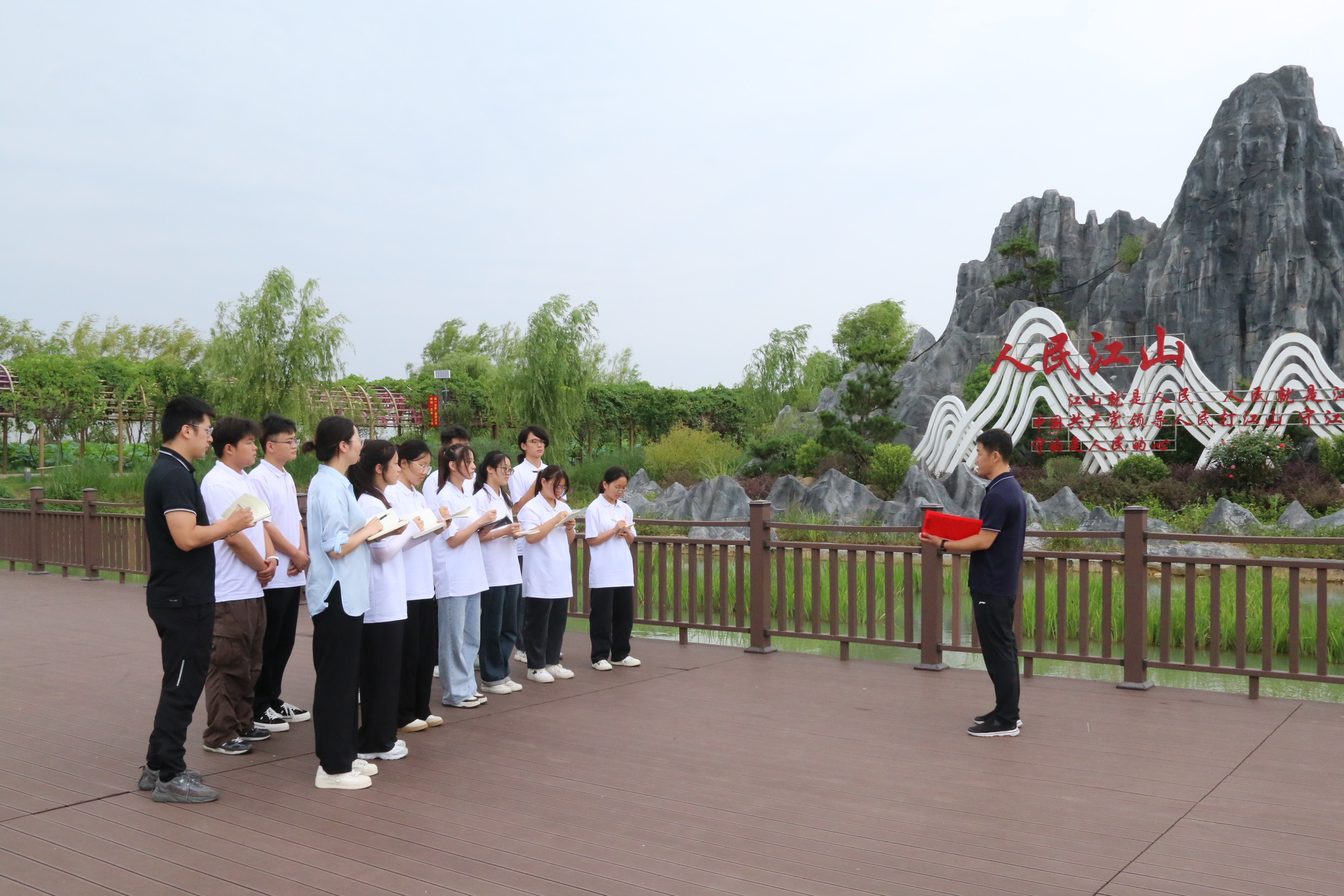 在江山论广场,实践队员们聆听讲解员对当地历史文化的详细讲解,重走习近平总书记的考察路线,深入学习习近平总书记在南阳指导工作时的重要讲话精神和指示要求,深入了解了当地的历史沿革、文化传承和时代变迁。广场上,碑刻林立,雕像栩栩如生,蕴含着深厚的历史底蕴和文化内涵,充满了浓厚的历史文化氛围。实践队员们认真聆听,不时提问交流,对当地的历史文化有了更加深入的了解。在此基础上,实践团队以师生领学的方式,通过实地学习,提升师生的文化素养,帮助实践队员们加深对习近平总书记讲话精神和南水北调精神的理解,大家纷纷表示收获颇丰。这样的互动式教学不仅激发了实践队员们的学习兴趣,还让他们在实践中不断进步。在参观过程中,一位老村民向师生们讲述了一段关于江山论广场的历史故事。他的话语中充满了对这片土地的热爱和对历史的敬仰之情。师生们听得津津有味,仿佛穿越时空回到了那段波澜壮阔的岁月。