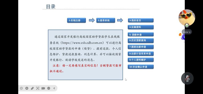 在“云走访”暨助学贷款政策宣讲中,学院设置了贷款政策解读环节,详细介绍高校贷款与生源地贷款的申请流程、初贷条件、续贷手续及还款方式等内容。此外,本次活动还邀请了多位员工代表通过视频连线的方式,分享了他们丰富多彩的暑假生活。张栋栋表示,感谢学校和社会各界对他们的关心与支持,同时希望用自己的所学所能去帮助那些需要帮助的人。这些分享充分展现了公司员工积极向上的精神风貌,也激励着更多同学珍惜假期时光,合理规划生活,努力提升自我。