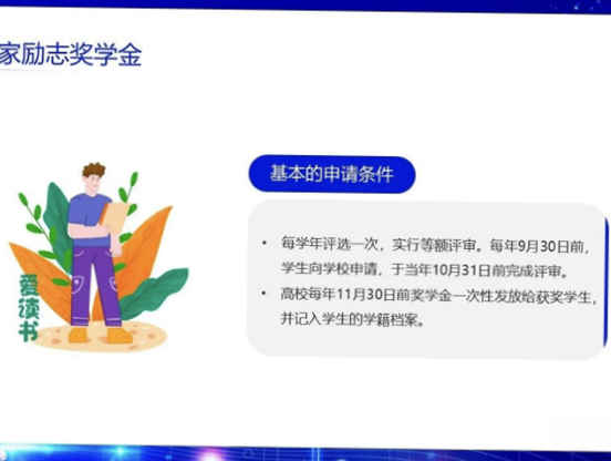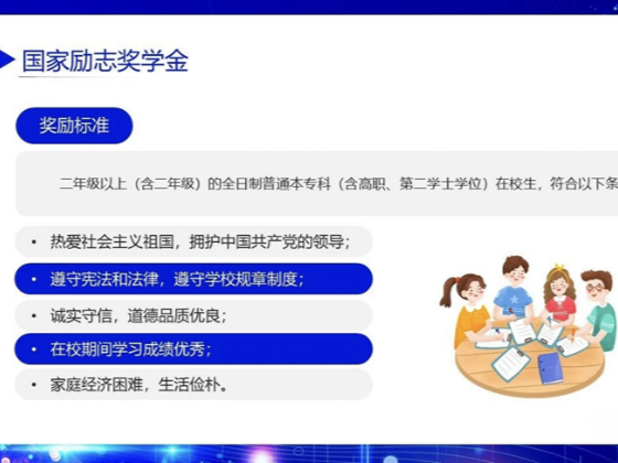 通过此次宣讲,他表示,作为国家励志奖学金的受益者和宣传者,一定会更加努力学习,积极宣传资助政策,不忘初心,砥砺前行。他也希望各位学弟学妹牢记党恩国情,秉承感恩之心,坚守诚信之约,勇担社会重任,立志读书成人成才。
