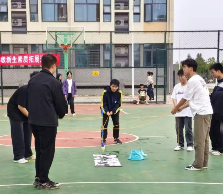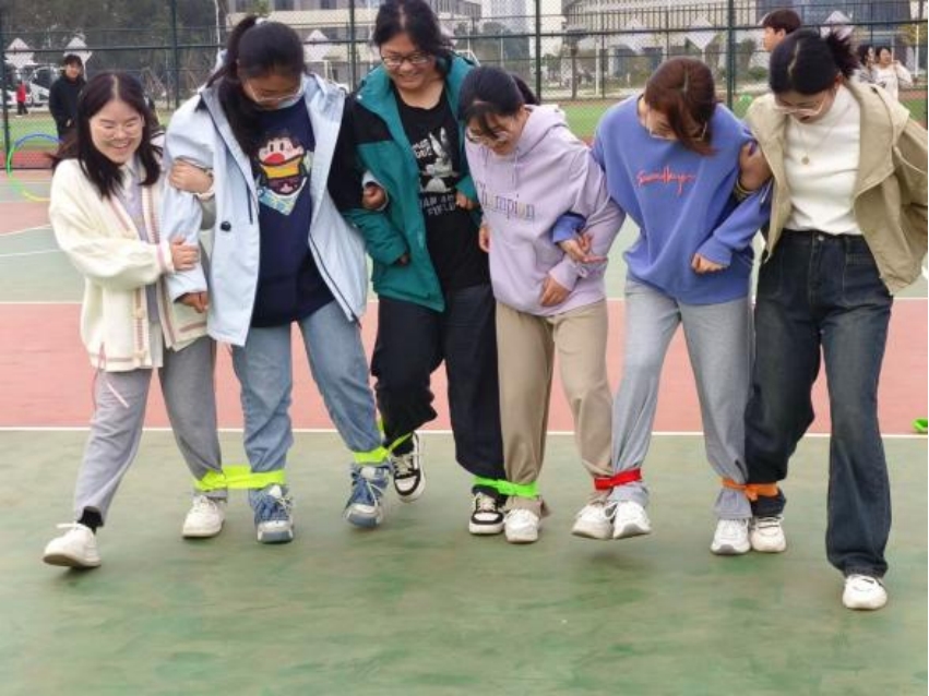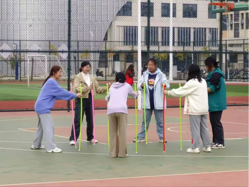10月27日,同学们在东校区篮球场以班级为单位,参与“传递呼啦圈”、“绑腿跑”、“神笔马良”等游戏项目。同学们在比赛中相互鼓励、相互支持,充分展现出积极向上的精神风貌。新生素质拓展运动会不仅让同学们释放了压力,还培养了他们的竞争意识和创新思维,为老员工活增添了一抹亮丽的色彩。
