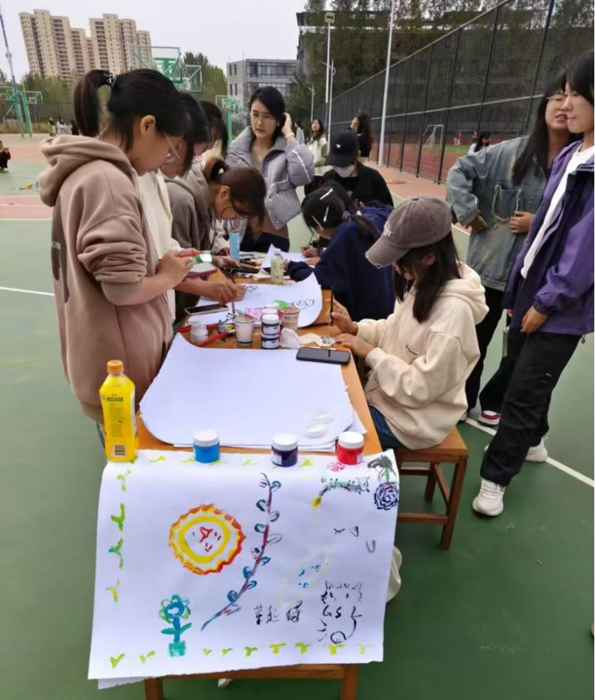 同学们在纸上随意涂鸦,表达内心想法,多人合力完成一幅作品。活动旨在通过创意涂鸦制作提升大家的想象力和心灵探索能力,提醒同学们关注自己的心理健康,倡导积极表达情感和通过创作来宣泄情绪。