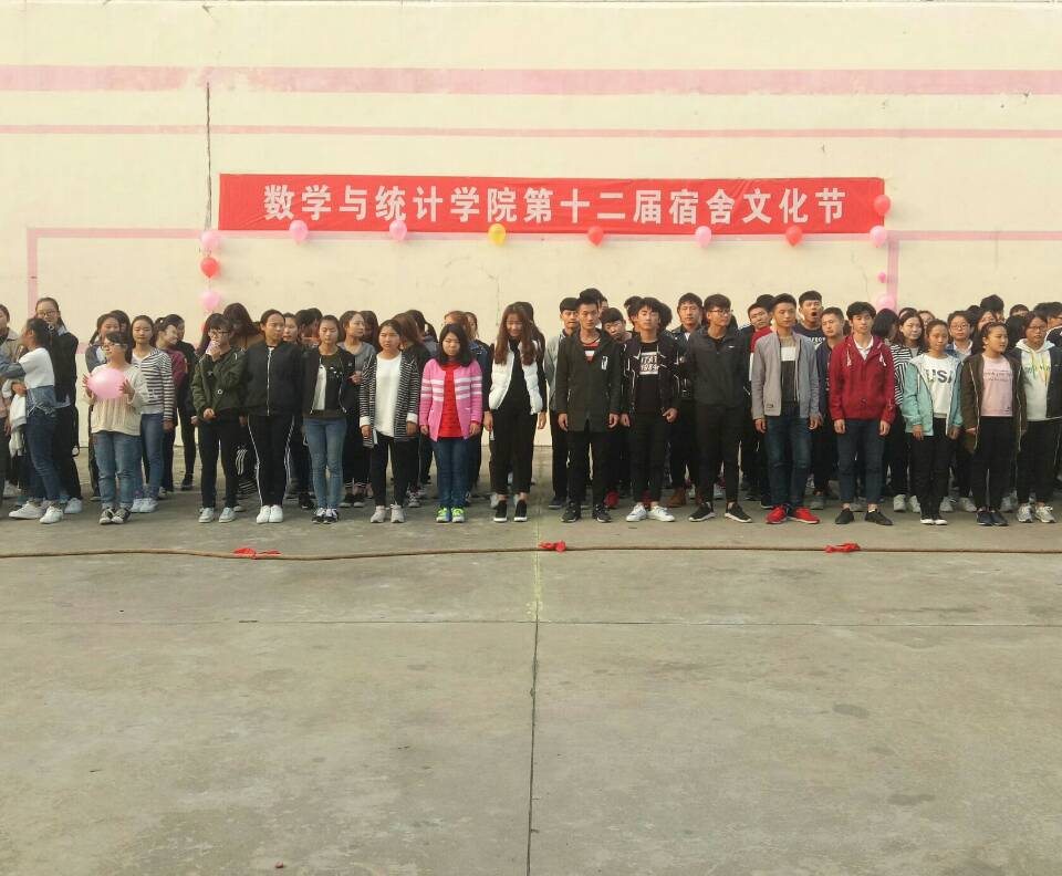 本网讯(员工记者/符豆豆)为了丰富校园文化生活,共造美好的宿舍生活空间。11月3日下午4点半,由数学与统计学院系生活部主办的“第十二届宿舍文化节”在下沉广场准时举行。党总支副书记陈同勉、17级辅导员冯清、员工会主席杨延森受邀至现场为同学们呐喊助威。大一、大二全体员工参加此次活动。