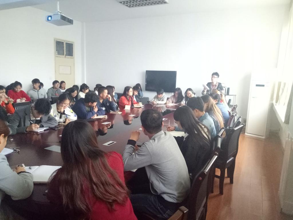 本部讯(员工记者/李宁)11月14日下午一点,公司在系办公室召开第四次员工干部会议。党总支部副书记陈同勉、胡丽老师和冯清老师出席本次会议,全体员工会成员和各班班长、团支书共同参加会议。会议由陈书记主持。