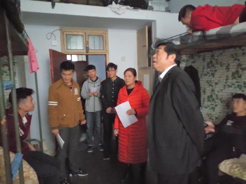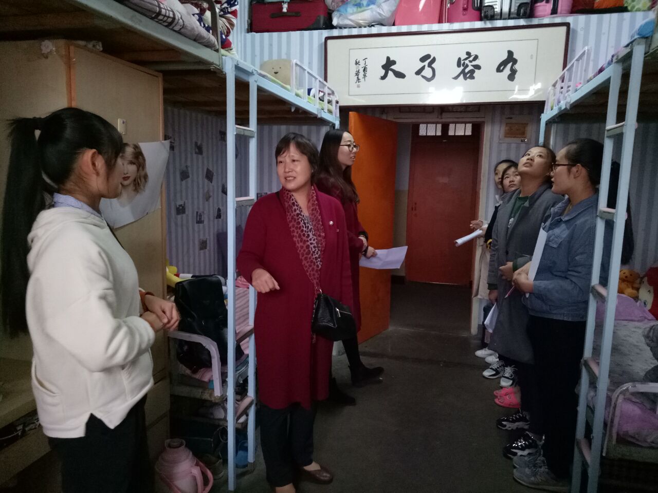 为不影响同学们正常午休,提高效率,此次检查分为两组同时进行。秦书记和胡老师负责检查男生宿舍,陈书记和冯老师负责检查女生宿舍。检查过程中发现,大多数寝室都在尽力整改,争取做到干净整洁,文明有序。尤其男生宿舍改观比较大,得到了老师们的认可。女生宿舍卫生一直保持较好,尤其是10号楼405宿舍,不仅干净整洁,布置的还很温馨,宿舍的学习氛围也很浓厚。陈书记对该宿舍同学进行了高度赞扬,并呼吁其他同学向她们学习。胡老师在检查过程中指出生活用品要摆放整齐,地面要保持干净等都是不容忽视的小细节。鼓励广老员工要通过整改寝室卫生,营造良好的生活学习环境。