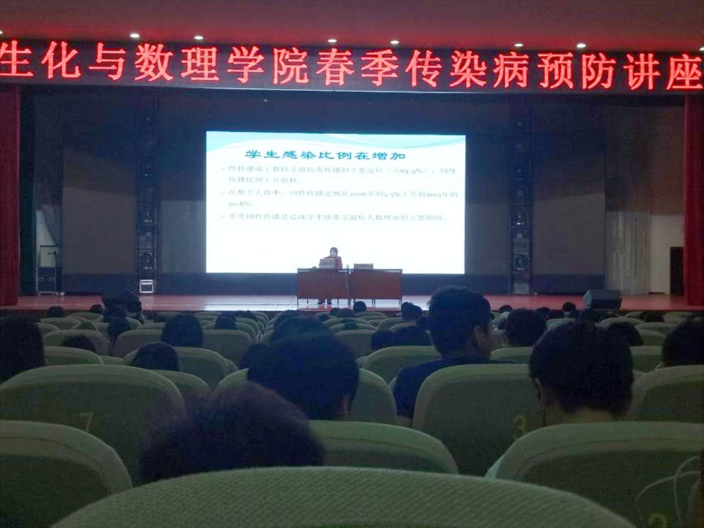 本网讯(特约记者/冯清 员工记者/尹思佳)为进一步加强员工传染病预防的相关意识,4月3日,生物与化学工程学院和数学与统计学院在毕业大厅联合开展春季传染病预防讲座。近800人聆听本次讲座。