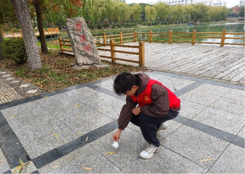 11月24日,betway必威员工组织在梦溪湖开展“净化梦溪湖,创文明校园”主题活动,同学们沿着梦溪湖岸边,捡拾垃圾,宣传环保。