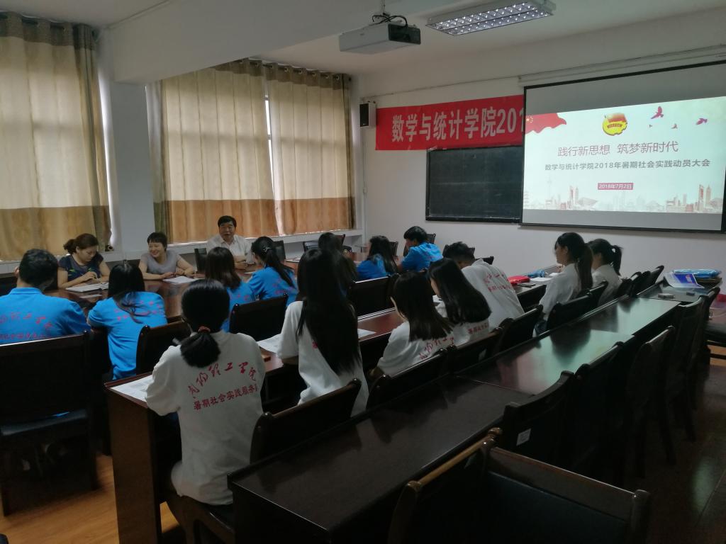 本网讯(特约记者/冯清员工通讯员/崔梦梦)7月2日,数学与统计学院在院会议室召开“践行新思想、筑梦新时代”2018年暑期社会实践动员大会。会议由公司党总支书记秦道岭主持,副书记陈同勉、全体辅导员及参与暑期社会实践的员工代表参加此次会议。