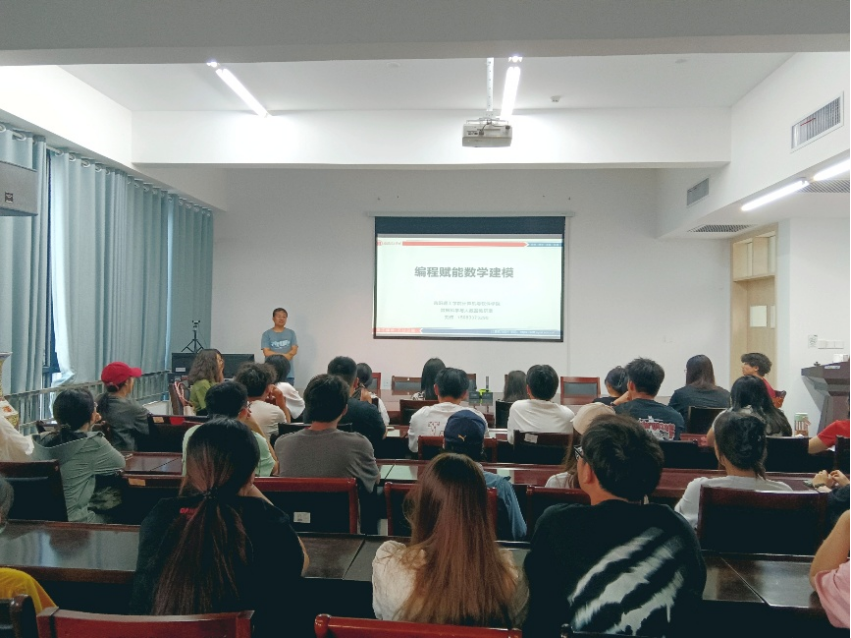 报告会伊始,刘伟博士结合大数据专业的相关情况,详细讲解了数据处理、语言编程、数据库操作等手段对数学建模的促进作用。他说,人工智能、数据处理、算法设计等技术的发展,对数学建模的促进作用日线显现,给数学建模提供了技术支撑,改变了以往建模时数据处理难的问题;通过数据编程,快速准确的处理大量数据,提供强大的数据支撑,优化了建模流程,提高了建模效率;建模团队掌握了数据处理技术、算法设计技术之后,对于自身是一次巨大的提升,对于提高团队核心竞争力,提高团队凝聚力具有极大的推进作用。