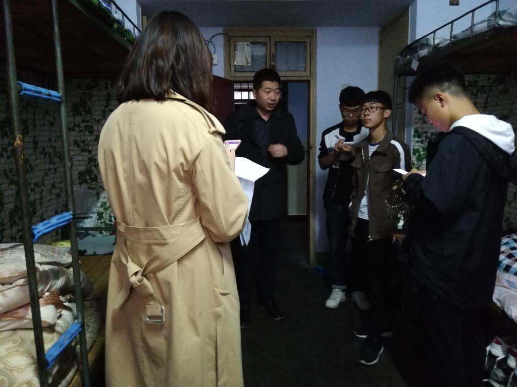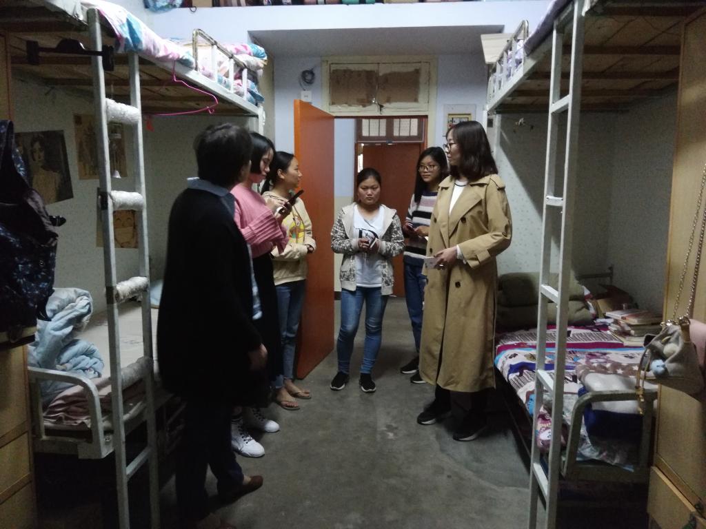 此次检查首先是男生宿舍,然后是女生宿舍。检查过程中发现多数寝室都能做到干净整洁,布置温馨,只有小部分细节需要改正;但是有部分寝室杂乱无章,物品摆放不到位,清洁卫生不过关。陈书记等在检查过程中多次对同学们指出生活用品摆放整齐、窗户洁净、地面保持干净等细节问题,并且多次强调宿舍安全问题,禁止使用大功率电器、使用床帘时应注意安全。