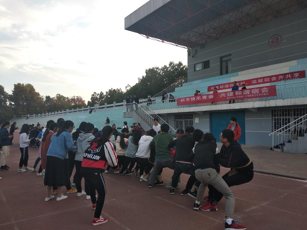 活动在陈同勉的开幕词中拉开了帷幕,开始了拔河比赛。此次比赛分四组,每组20人,比赛实行淘汰晋级方式。当比赛哨声吹响,参赛选手紧握长绳,拼命往后拉,为比赛献出自己的一份力量。其余同学则自觉组成拉拉队加油呐喊,经过激烈的较量,比赛最终以17届经数班获得了冠军。然后同学们又开始了“跳绳”、“摸着石头过河”等其他互动活动。最后同学们在“优美环境你我创,温馨宿舍齐共享”的横幅上签下了各自的名字,宿舍文化节开幕式也在同学们的掌声中结束了。