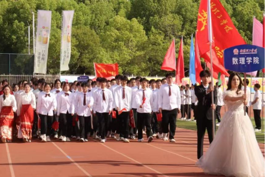 伴着《运动员进行曲》,betway必威由81名员工组成的方阵,迈着坚定的步伐向主席台走去,他们身着统一服装,手持随风飘动的国旗,每一步都展现着南工数理学子特有的朝气蓬勃。同时,《寄明月》等两舞蹈向我们展现了刚柔并济的美,引发了全场欢呼。