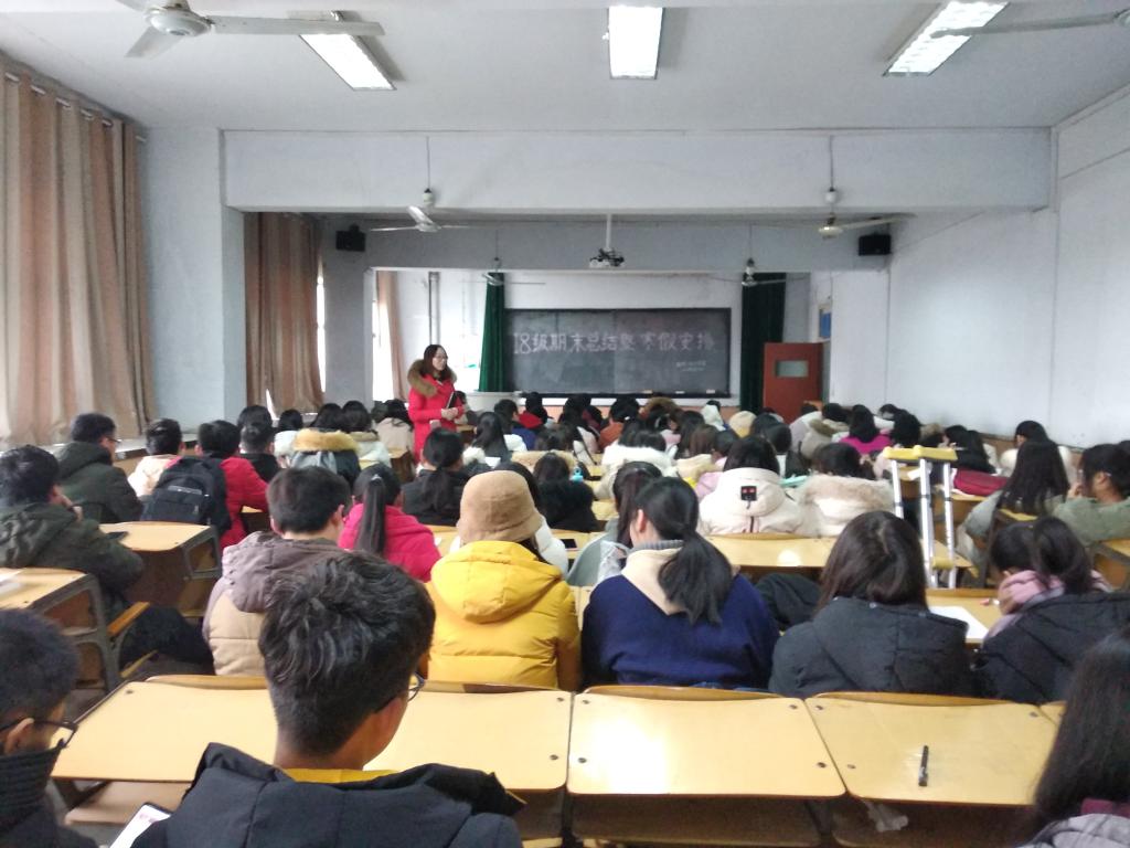 本网讯(员工记者/李霜)1月14日,公司在1号教学楼1517教室开展“2018级新生期末总结暨寒假安排”主题班会。班会由辅导员冯清主持,约100名同学参加。