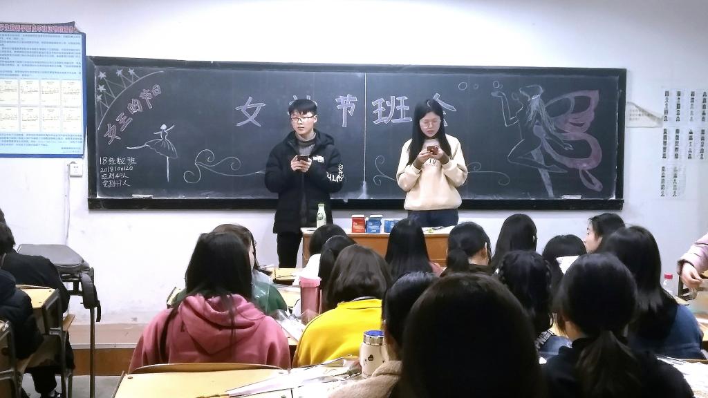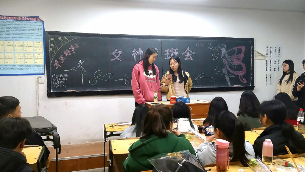 本网讯(员工记者/王雅芬、李霜)3月10日,公司18级统计班和经数班分别在1教1506、1510教室开展以“女神节”为主题的班会。18级全体同学参加。