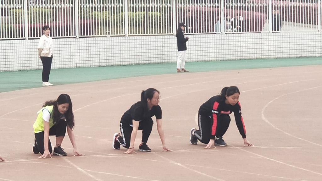 红色的跑道,承载了多少汗水,一条红线,记录了多少成败;一次起跑,是瞬间的爆发,成败,即决定其中。瘦弱的身躯没有影响她们对运动的热情,起跑线上的微笑,赛道上的奋力奔跑,都体现着数统女生拼搏向上的精神。
