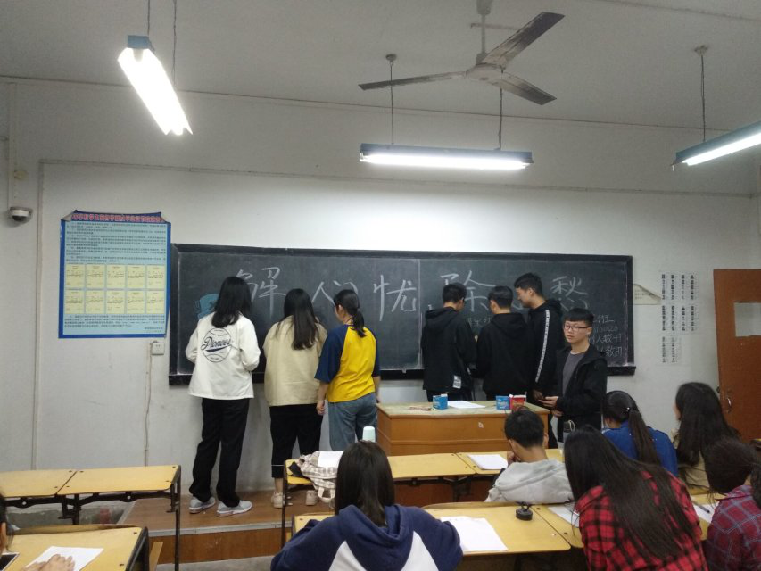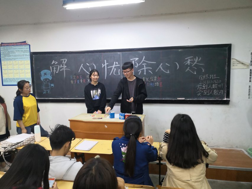 本网讯(员工记者/李霜、王雅芬)4月14日晚,公司18级统计班和经数班分别在1号教学楼1506教室和1510教室,开展以“解心忧,除心愁”为主题的班会。本次班会18级全体同学近百人参与。