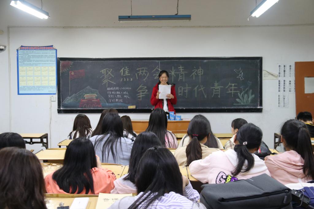 本网讯(员工记者/王雅芬、李霜)4月21日晚,公司18级统计班和经数班分别在1号教学楼1506教室和1510教室里,开展了以“聚焦两会精神,争做时代青年”为主题的班会。本次班会18级全 体同学参与。