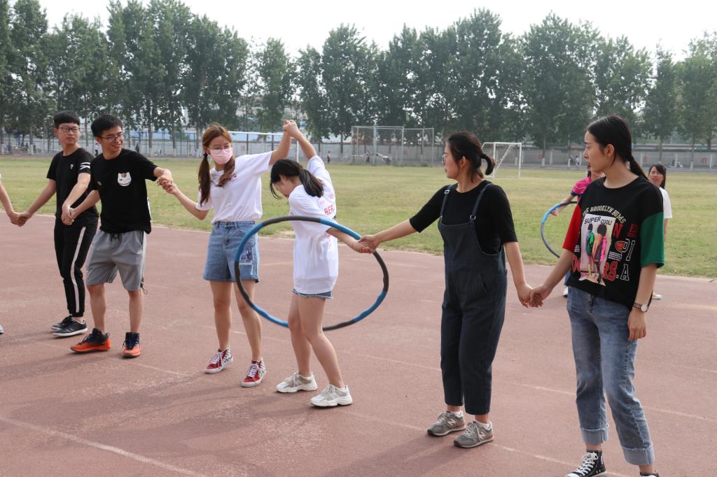 活动的开始,活动负责人将同学们分成了四个小组,小组之间进行两两对战,第一轮比赛通过传递小球和呼啦圈来抉择出胜利的两个小组,同学们通过默契的配合,顺利的将小球用塑料管传递到了纸杯当中,与此同时,小球进入纸杯的一瞬间,传递呼啦圈的同学们便立刻行动了起来,同学们手拉着手,脸上带着欢笑,顺利完成了比赛。