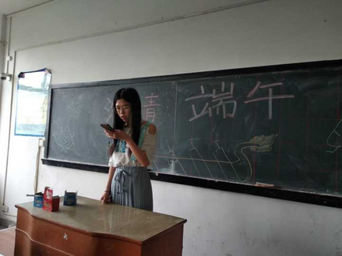 节日是一种传承,古代的文人侠客在每个节日都有留下美文诗句,端午节也不例外。同学们分享了一些关于端午诗句,“轻汗微微透碧纨,明朝端午浴芳兰”,“良辰当五日,偕老祝千年”都体现着端午节的美好。“屈子冤魂终古在,楚乡遗俗至今留”也记录着屈原的惨烈。