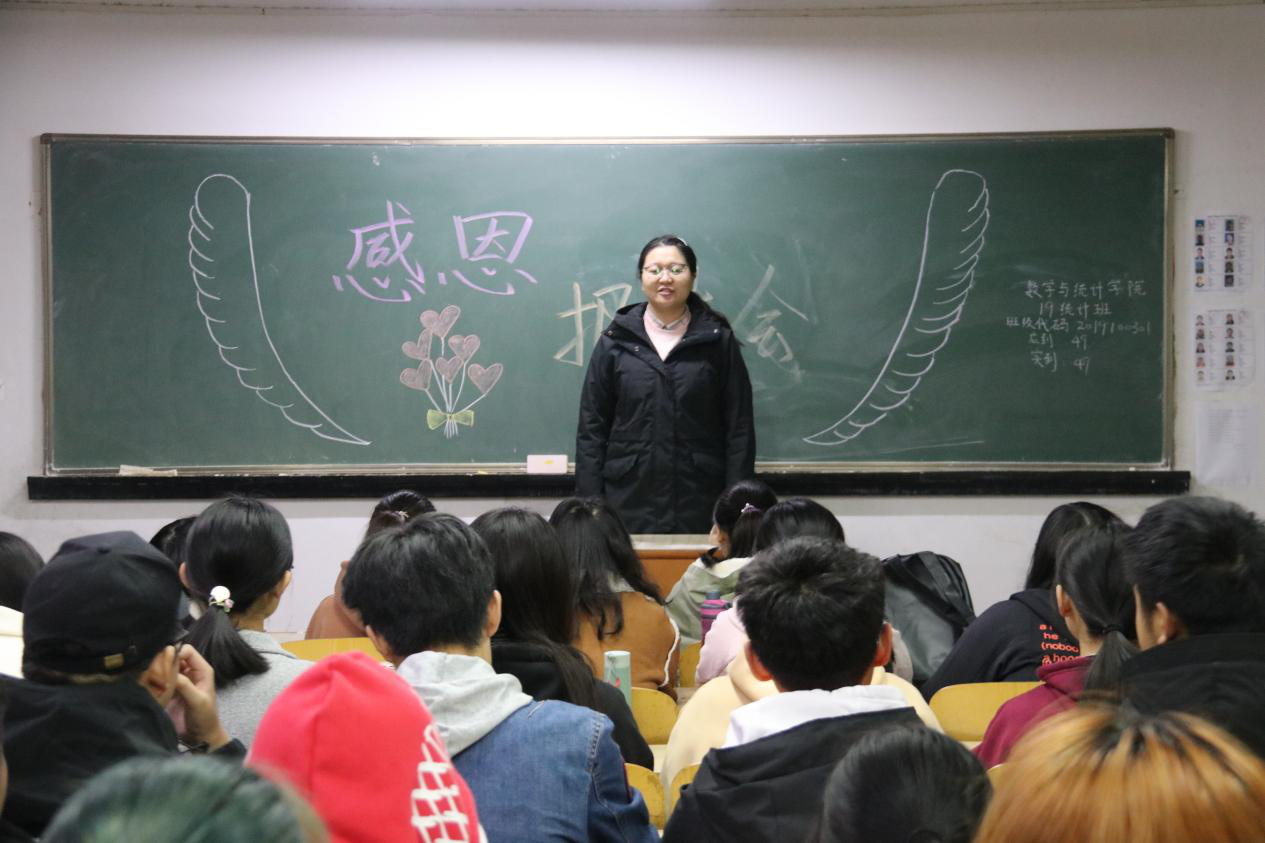 本网讯(员工记者/陈思桦 刘欣雨)11月21日,数学与统计学院17、18、19三个年级分别在1506、1508、1510教室成功开展了感恩自强报告会,本次活动近300人参加。