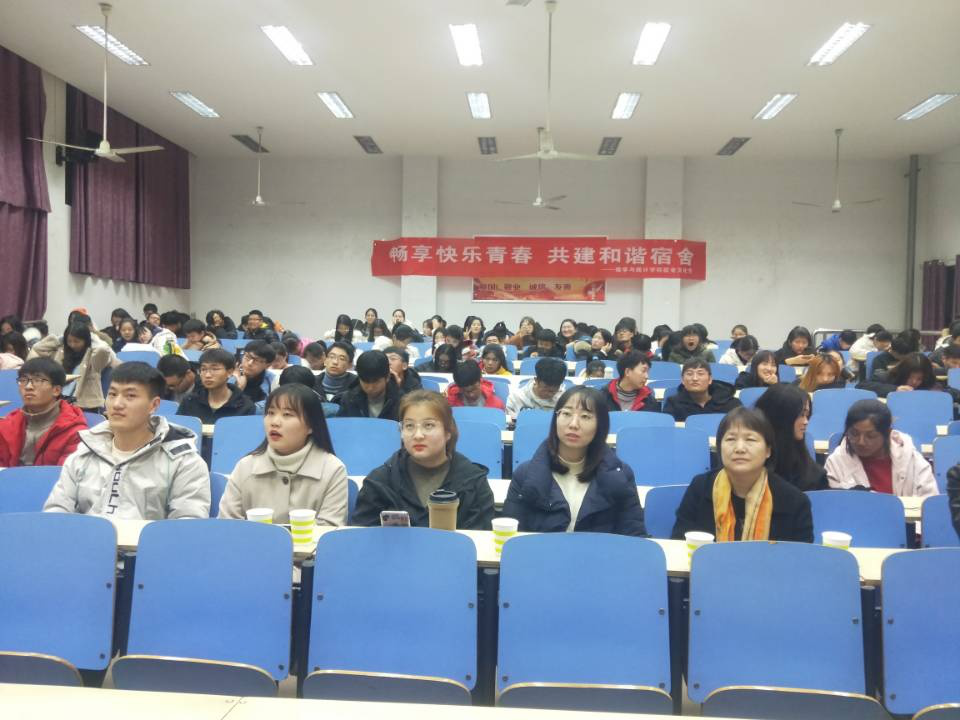 本网讯(员工记者/黄榕溶)12月10日,公司在六教六阶一教室举办“畅享快乐青春,共建和谐宿舍”宿舍文化节闭幕式。党总支副书记陈同勉,团委书记王满,辅导员冯清以及三位员工代表担任评委。本次活动近200人观看。