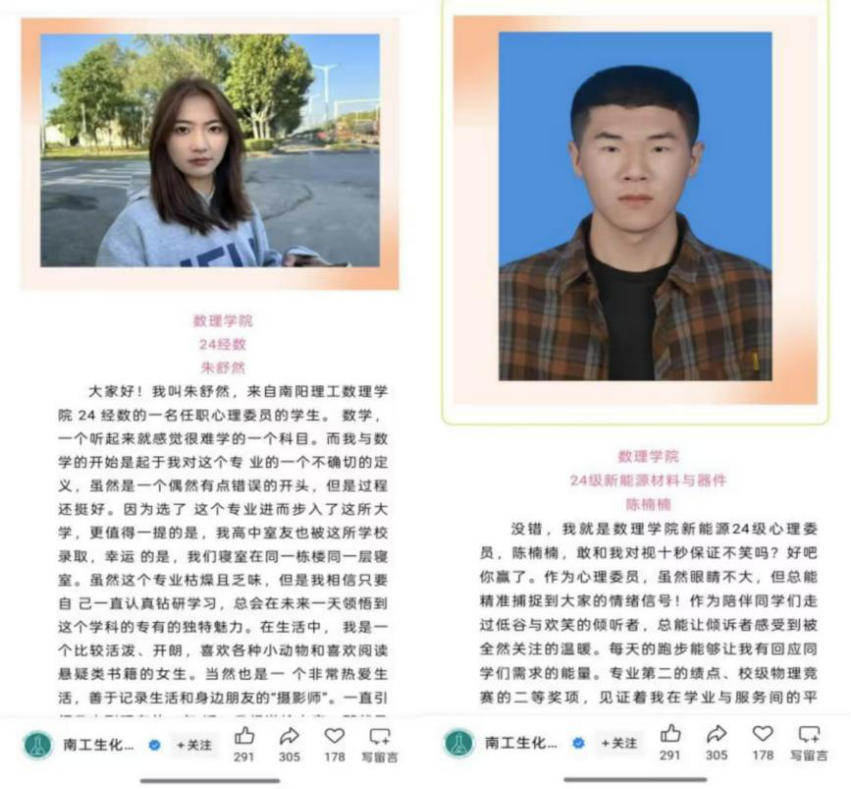 5月6日—5月13日,公司心理委员参加“十佳心理委员”评选,其中陈楠楠、朱舒然两位同学通过了初赛,复赛、决赛,最终取得了第一名和第八名的好成绩,成功入选南阳理工十佳心委。