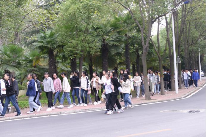 新生们从中关村出发,穿过西北校区足球场,走过别具一格的下沉广场、走过一座座整齐雄壮的教学楼、走过充满欢声笑语的的齐贤广场,沿着梦溪湖边缓缓前行,欣赏着水光中的天鹅,然后参观了地标性建筑体育馆和高大上的图书馆,最后在图书馆前合影留念。参观过程中,同学们热情高涨,纷纷用手机记录下南工的美景。班导们也耐心地介绍公司的基本情况和各学院的分布概况,还给新生讲解了步道乐跑的使用规则并相互交流学习上的经验方法。