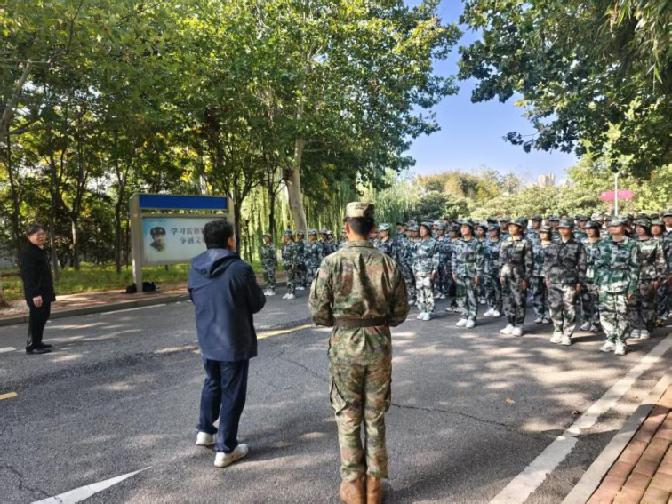 训练场上,新生们身穿军训服,在教官的指挥下进行队列训练,立正、齐步走等动作。他们的动作整齐划一,脸上满是坚毅,虽汗水浸湿衣衫却目光如炬。学院领导驻足观摩,与教官亲切交流,详细询问训练计划、后勤保障及新生适应情况,对教官们科学施训、悉心指导的专业态度表示衷心感谢。