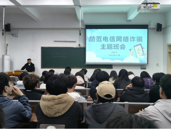 本网讯(员工记者/张恩琪)11月6日,betway必威在23教307召开防范电信网络诈骗主题班会。辅导员王怡飞主讲,2025级全体员工参加。