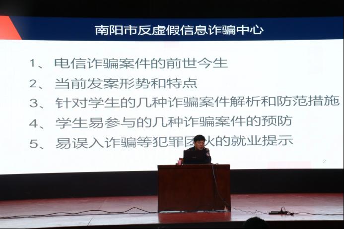 本网讯(员工记者/黄榕溶)为提高20级新生的防范意识,10月24日,公司与建筑学院在毕业大厅举办防诈骗安全教育讲座。南阳市公安局防诈骗中心付聪主任主讲,公司党委副书记王锦瑾主持,近800人参加此次讲座。