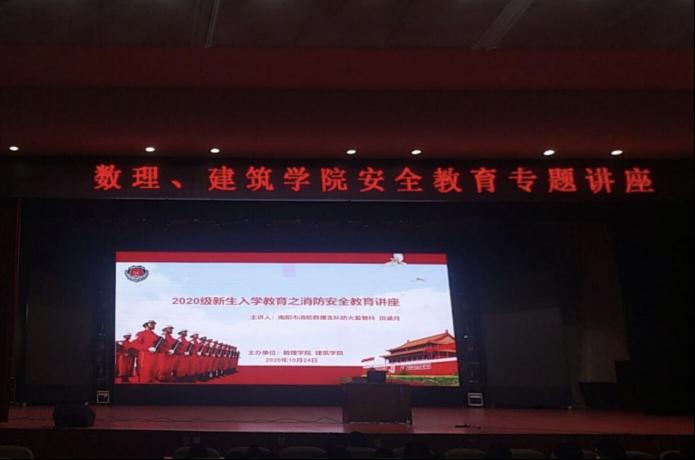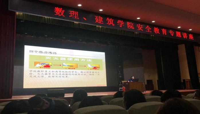 本网讯(员工记者/刘欣雨)10月24日晚,公司与建筑学院在毕业大厅举办消防安全教育专题讲座。本次讲座由南阳市消防救援支队防火监督科田涵月主讲,公司党委副书记王锦瑾主持。近八百名同学参加。
