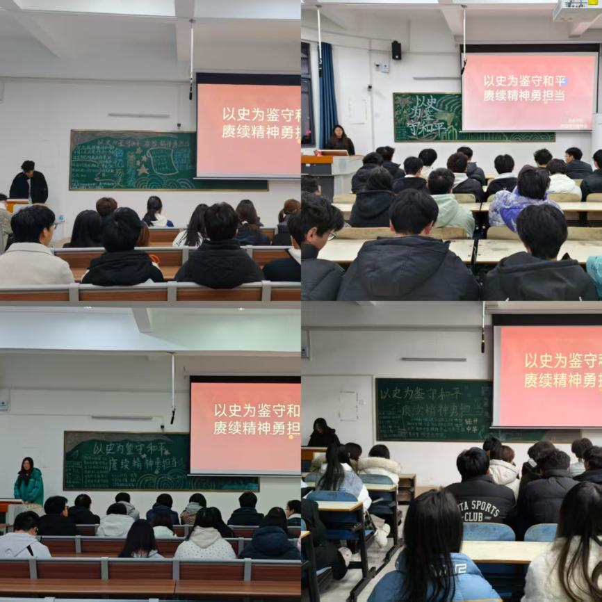 班会上,团支书围绕“以史为鉴,珍视和平”的时代内涵进行分享,通过播放纪录片,带领同学们回顾峥嵘岁月,深刻体悟和平的珍贵与来之不易,凝聚起青年一代的民族向心力与奋进动力。团支书呼吁同学们铭记历史、珍惜当下,不断增强家国情怀与使命担当,以实际行动维护人类共同的和平与正义。