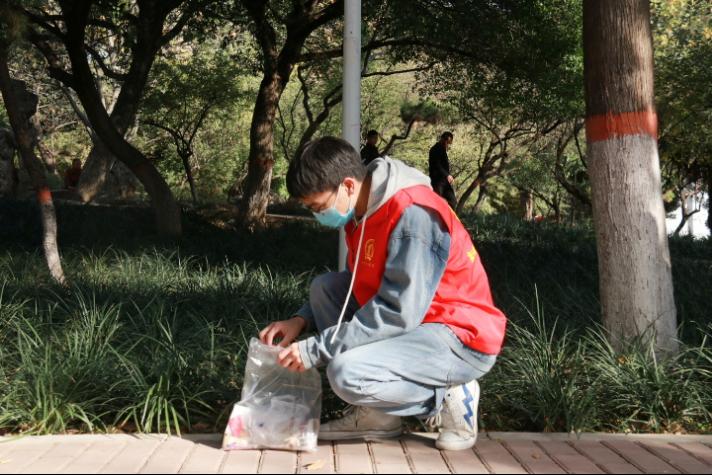 志愿者们一大早就来到了南阳市人民公园,分区域对公园进行了垃圾清理。大家拎着收纳袋,仔细将散落在各处的烟头,矿泉水瓶,餐巾纸清捡起来,个个都不怕脏、不怕累,干劲十足,相互配合,团结协作的清扫着落叶经过几个小时的不懈努力,公园的卫生情况得到了很大的改观,志愿者从中体会到了清洁工作人员的艰辛工作。