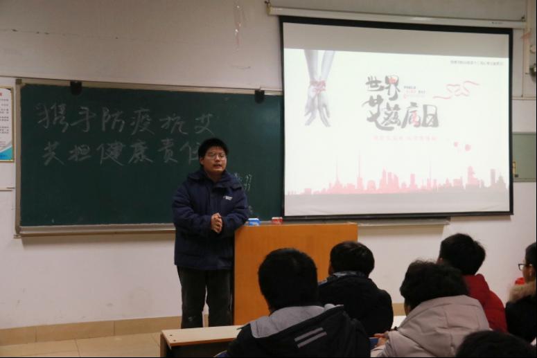 最后,张仲景国医国药医学院的黄万里同学向大家介绍了高校校园内艾滋病的现状。近几年,黄万里同学一直参与中国性病艾滋病防治协会高校防艾基金项目,并在公司开展“青春红丝带,你我共抗艾”艾滋病防治宣传活动。他用真实的案例讲述让大家明白艾滋病其实离我们并不遥远,提醒大家一定要提高防控意识。活动尾声,黄万里又和同学进行了艾滋病防治问答,在场同学踊跃参与,积极互动,反应热烈。