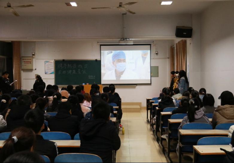 接着,主持人带领同学们一起观看了由南阳市疾病控制中心与公司联合拍摄的短剧《危险关系》,该剧分为《梦魇》、《情殇》、《礼物》三个单元,短短几分钟时间从不同角度讲述了艾滋病校园传播的一系列触目惊心的案例,发人深省。第二个视频是由中国青年报社与中国性病艾滋病防治协会共同推出的《生无畏:不被“艾”局限,突破不可能》,以护士、医生、志愿者的视角,讲述了三个艾滋病群体相关的小故事。视频中,同学们看到了有许多医护人员在对抗艾滋病时的严肃与认真;看到了无数艾滋患者对抗病魔的不屈不挠。通过观看视频让同学们对艾滋病有了更直观的了解,也了解到艾滋病患者存在的心理压力,并引导同学们正确看待身边的艾滋病患者,不歧视艾滋病患者。
