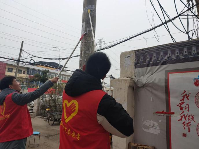 志愿者正在清理社区小广告