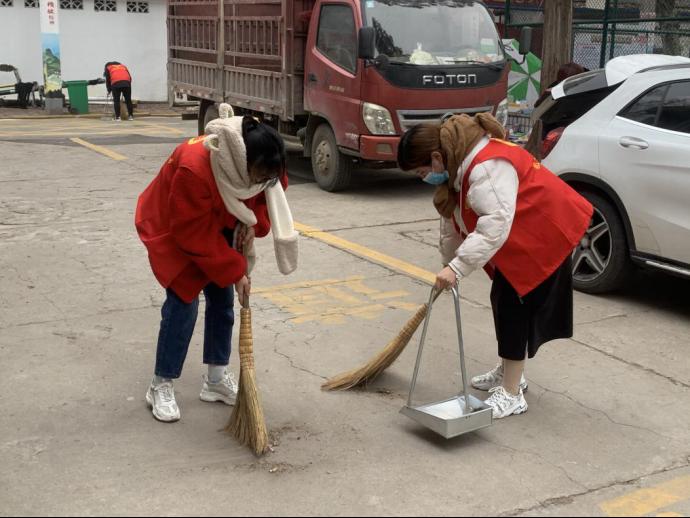 志愿者们正在打扫社区卫生