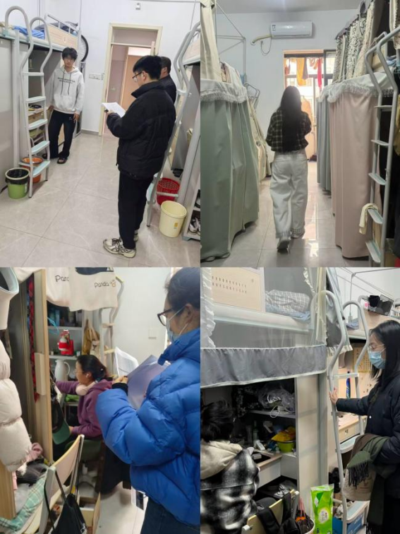 本次检查覆盖全院所有员工宿舍,重点围绕环境卫生、用电规范、消防设施、物品摆放等方面进行细致排查。检查中发现,大部分宿舍整体情况良好,但仍有部分宿舍存在卫生死角清理不到位、私拉电线、杂物堆放不规范等现象。检查组现场指出问题,并督促相关同学立即整改,强调要牢固树立安全防范意识,自觉维护宿舍环境。