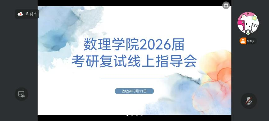 本网讯(员工记者/武博雅)为扎实推进考研复试指导工作,掌握考研复试技巧,做好考研跟踪服务,3月11日,betway必威举办考研复试线上指导会。邀请梁增一、丁钰珊、刘艺楠三位优秀毕业生代表分享实战经验,为同学们答疑解惑。公司2026届考研学子参加会议。